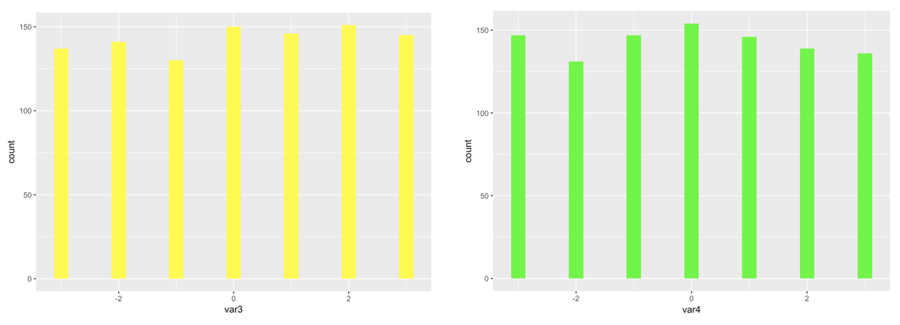 ex() %>% check_function("gf_histogram") %>% check_result() %>% check_equal()The following code will create the other nine variables (var2 to var10), and then save the 10 simulated variables in a data frame called somedata.