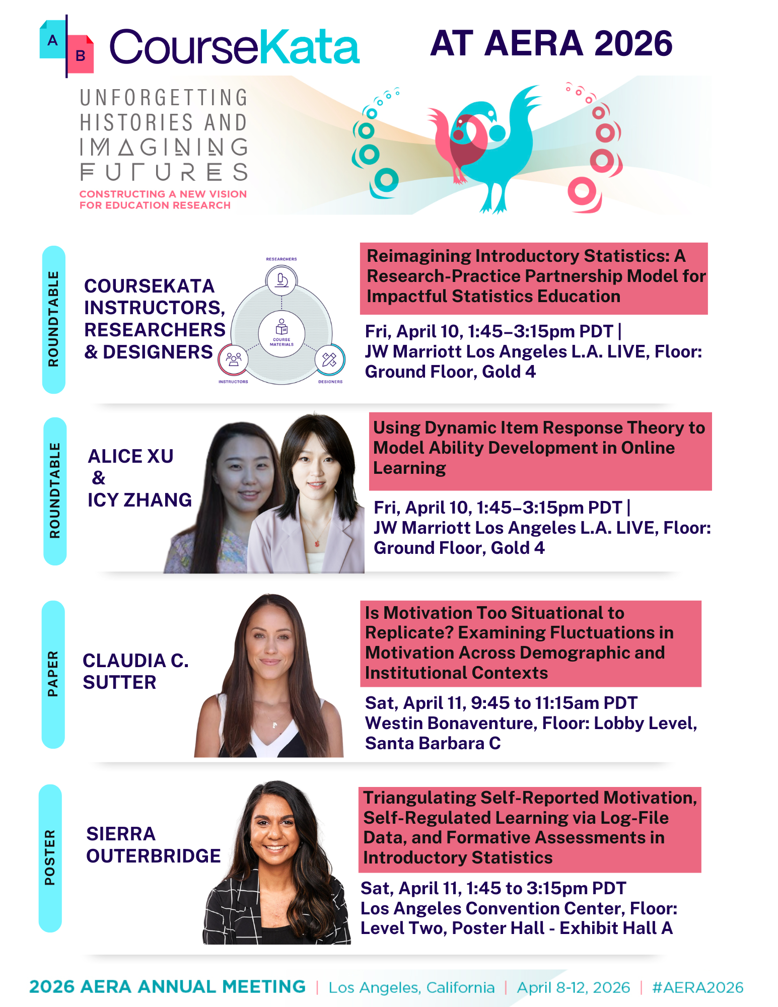 Come check out CourseKata at AERA - we'll be in four sessions.