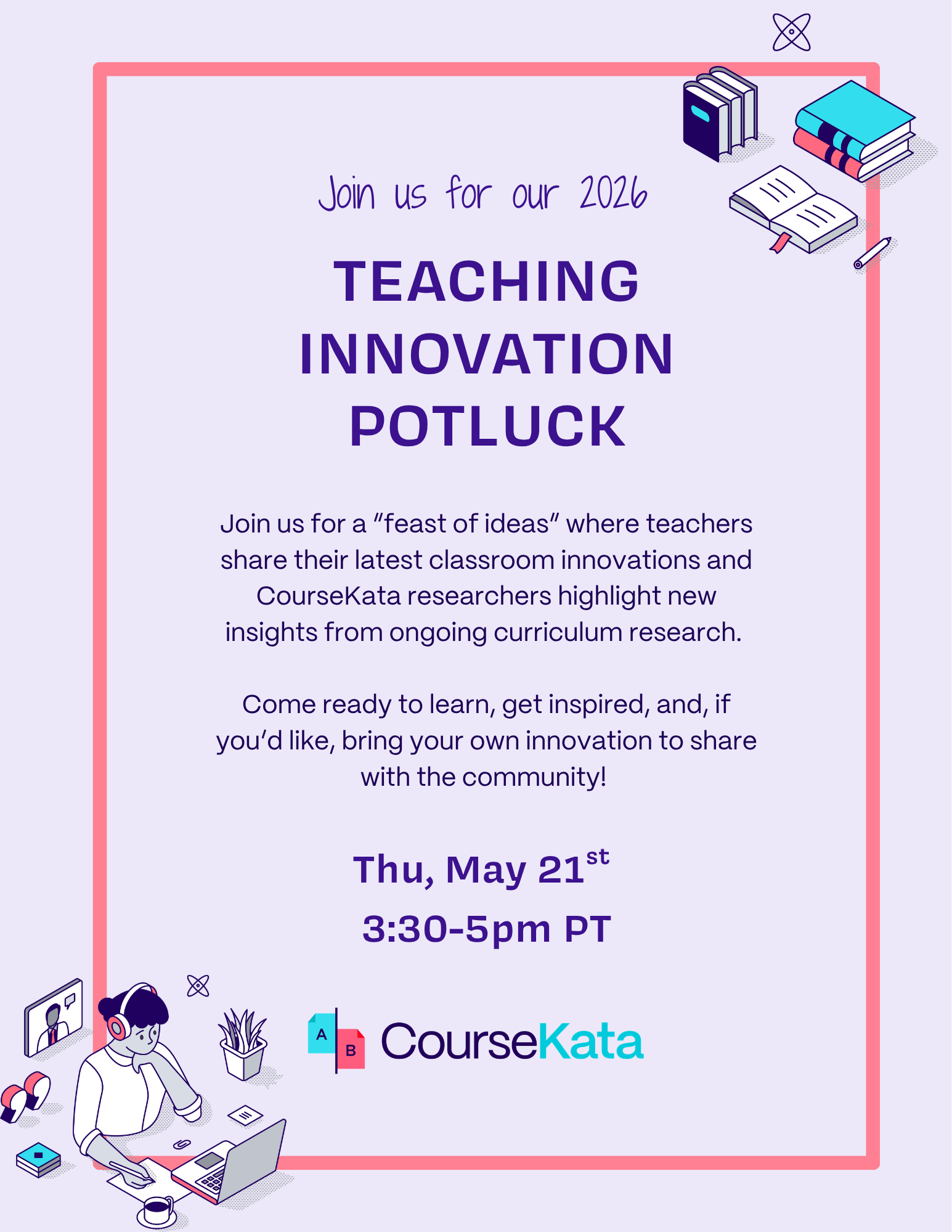 Featured instructors will share innovations that help CourseKata work for all students. We also welcome you to being any innovations you would like to share with our community!